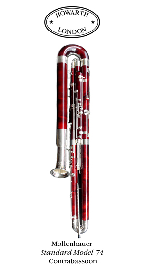 Howarth supplies this Mollenhauer contrabassoons with an aluminium flight case, with two crooks in lengths 1 and 2.