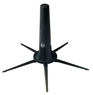 This stand is supported by 5 legs making it very stable and the black plastic peg is covered with a felt ring to protect the instrument. When not in use, the legs simply fold up and slot into the peg making it possible to store the stand inside the bell of your soprano.