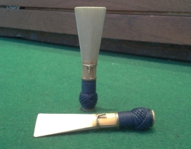 Medium strength free blowing reed, hand finished and well balanced to a professional standard. These reeds are made to a short pattern, with the reed measuring 55mm. Made by Howard Dann. Dark blue thread.
