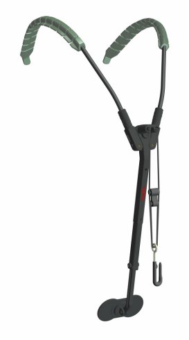 Saxholder is a new, patented three-point support system where the weight of the instrument is transferred onto the two padded shoulder handles with assistance from the abdominal rest.