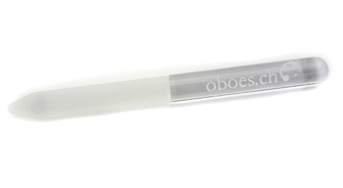 Glass file (tip finisher), alternative to emery paper. This ingenious tool can help on the tip and sides of the reed for fine finishing, improving response and tuning. Made of glass the tool lasts indefinitely and is a useful addition to the bassoon player's toolkit.