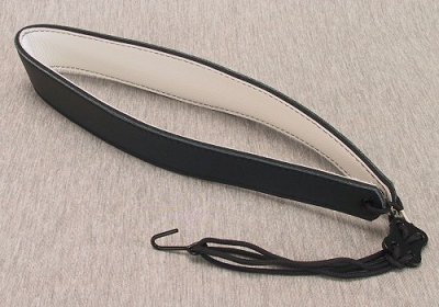Bassoon sling with shaped leather neckpiece, metal hook and slider. Also works as a Bass Clarinet sling.