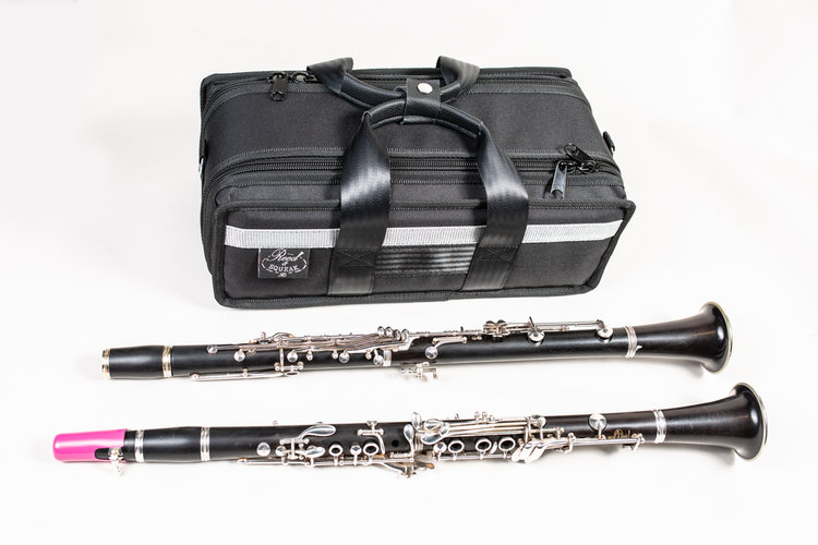 Made with an ultra hard coated polyester on the outside and a soft protective fabric enhanced by a polyethylene padding inside. The instruments inside are perfectly protected. Weighs less than 3.5 kilos with a pair of wooden clarinets and accessories. Ideal for many different combinations of instruments. Pair of Bb + A, Bb + Eb, Bb + flute etc.