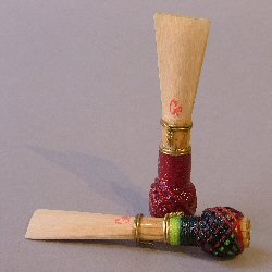 The tip shape is wide. This reed is very popular with intermediate players. The binding is multi-coloured.