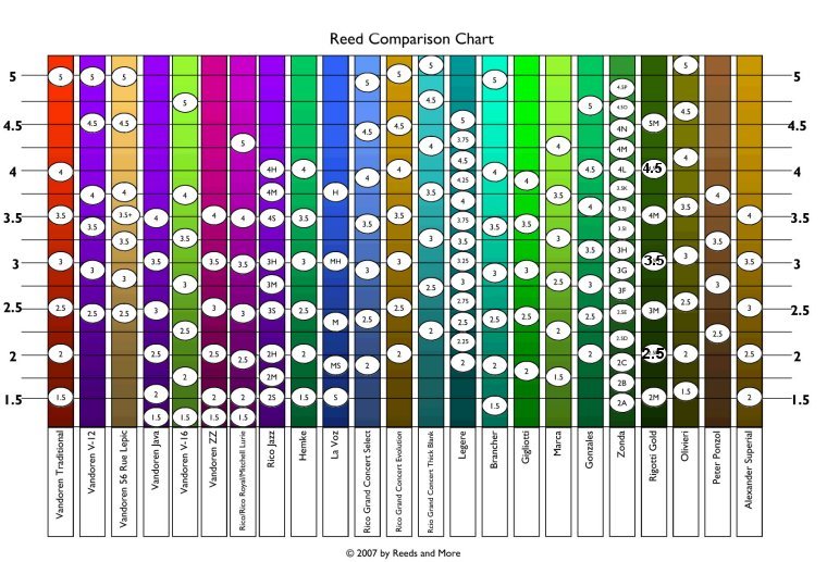 Please note that within each half strength of reed there are marked variants of Light, Medium and Strong.  Light reeds have the “O” in GOLD filled in, Medium will have nothing filled in and Strong reeds will have the D filled in.