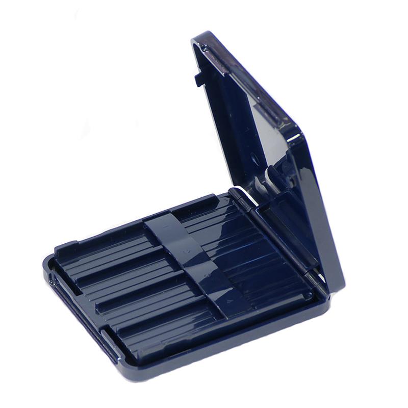 A dark blue reed case designed to hold 8 reeds.