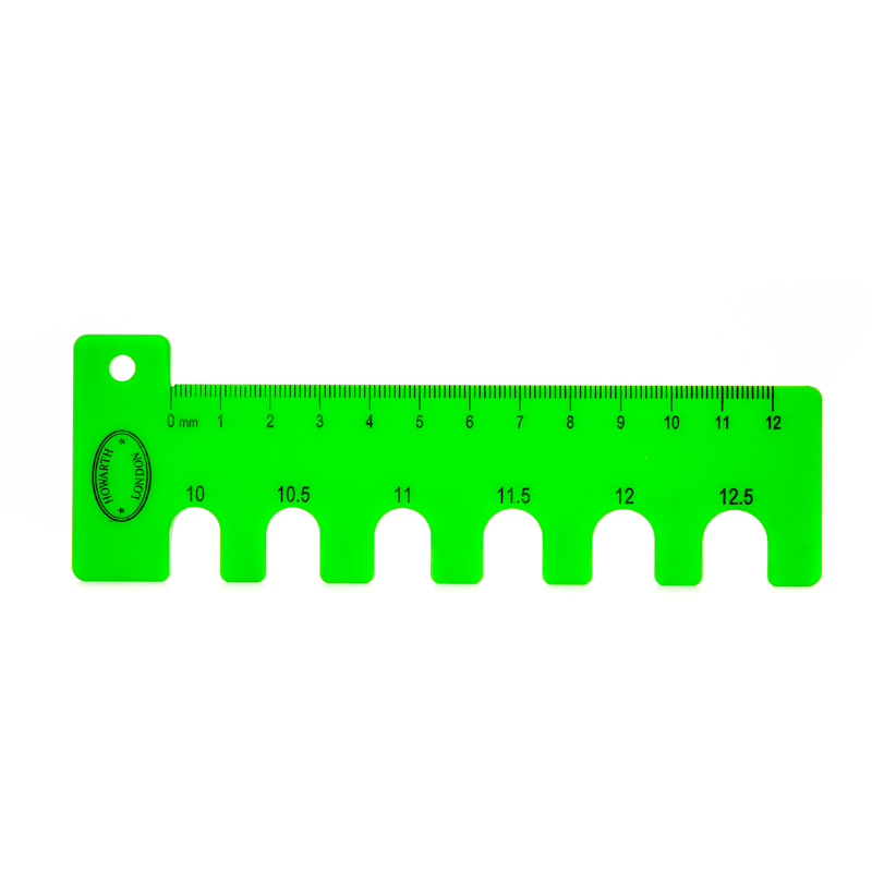 To enable you to check tube cane diameters: 10.0 - 12.5mm in 0.5mm gradations, with a length scale down the side. Now made on the high-tech laser engraving machine in our manufacturing workshops!